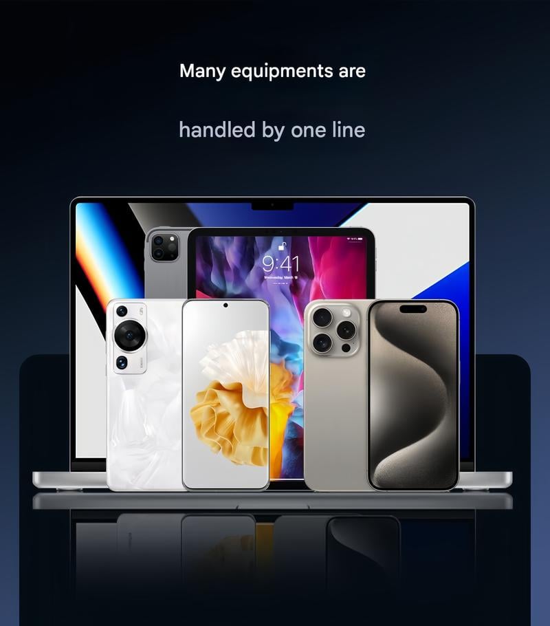 Menawarkan Pengecasan Pantas 240W, sangat sesuai untuk permainan, pejabat dan dalam kereta. Kompatibel dengan iPhone, Samsung, dan peranti Type-C.